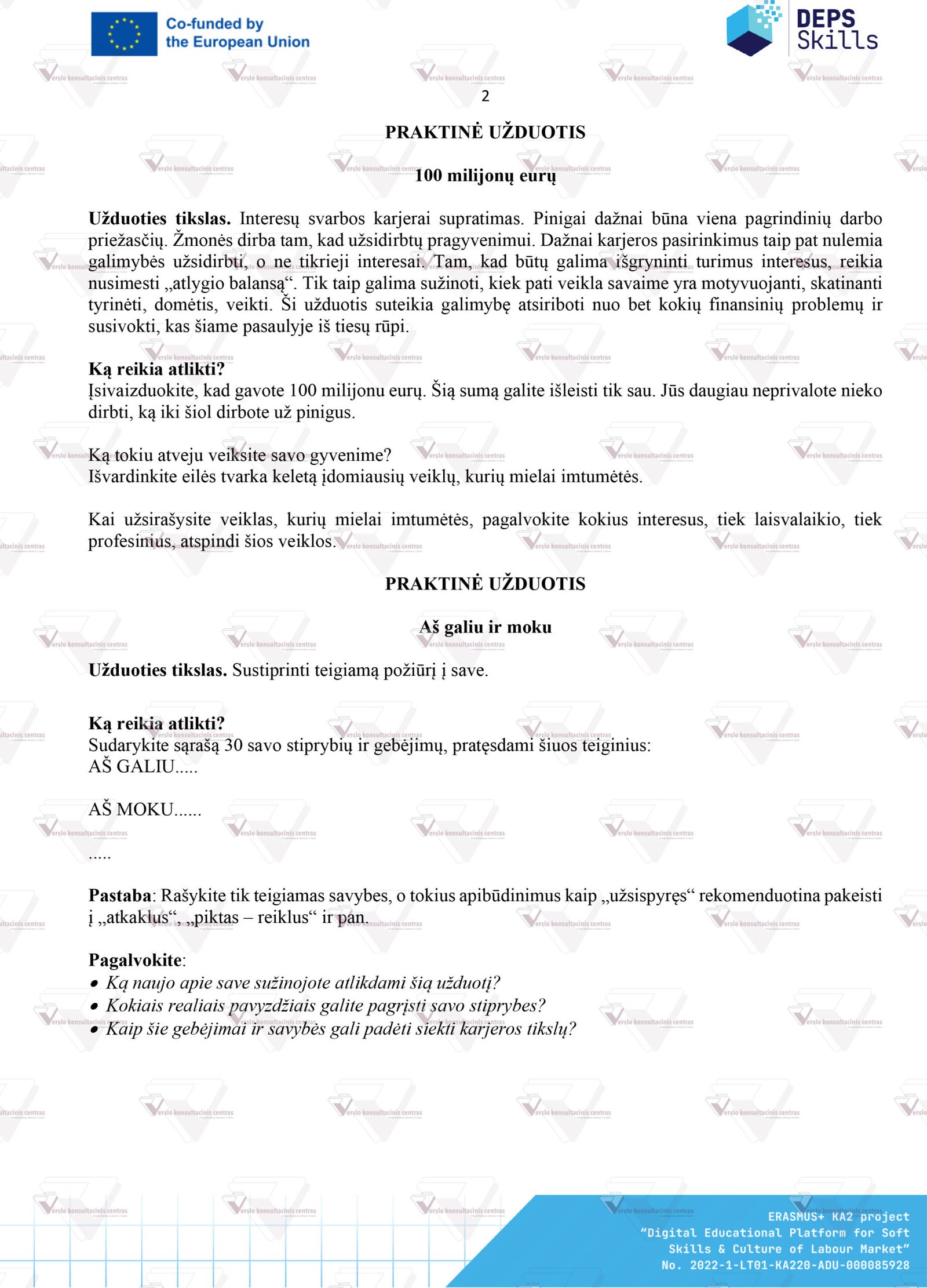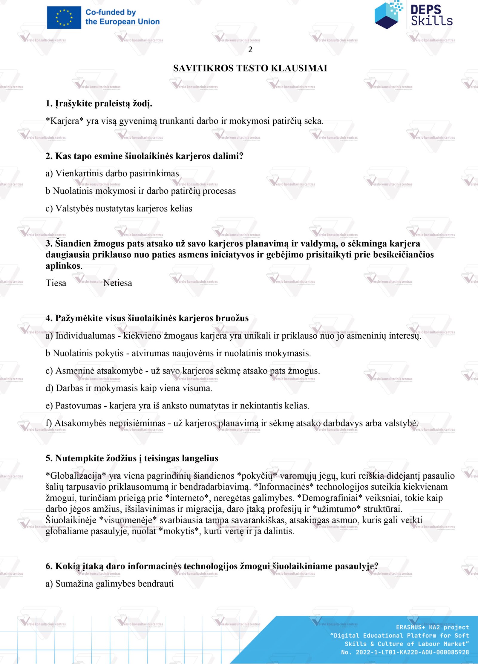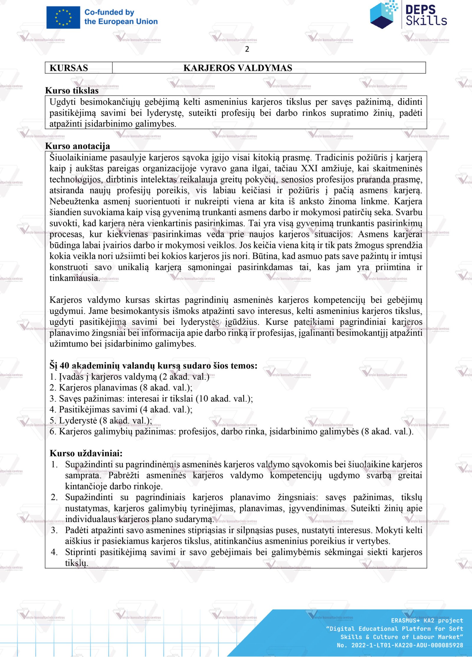 2. Išsami „Karjeros valdymas“ mokymų programa (Curriculum), leidžianti nesudėtingai ir savarankiškai vesti mokymus kitiems, šia mokymų tema.