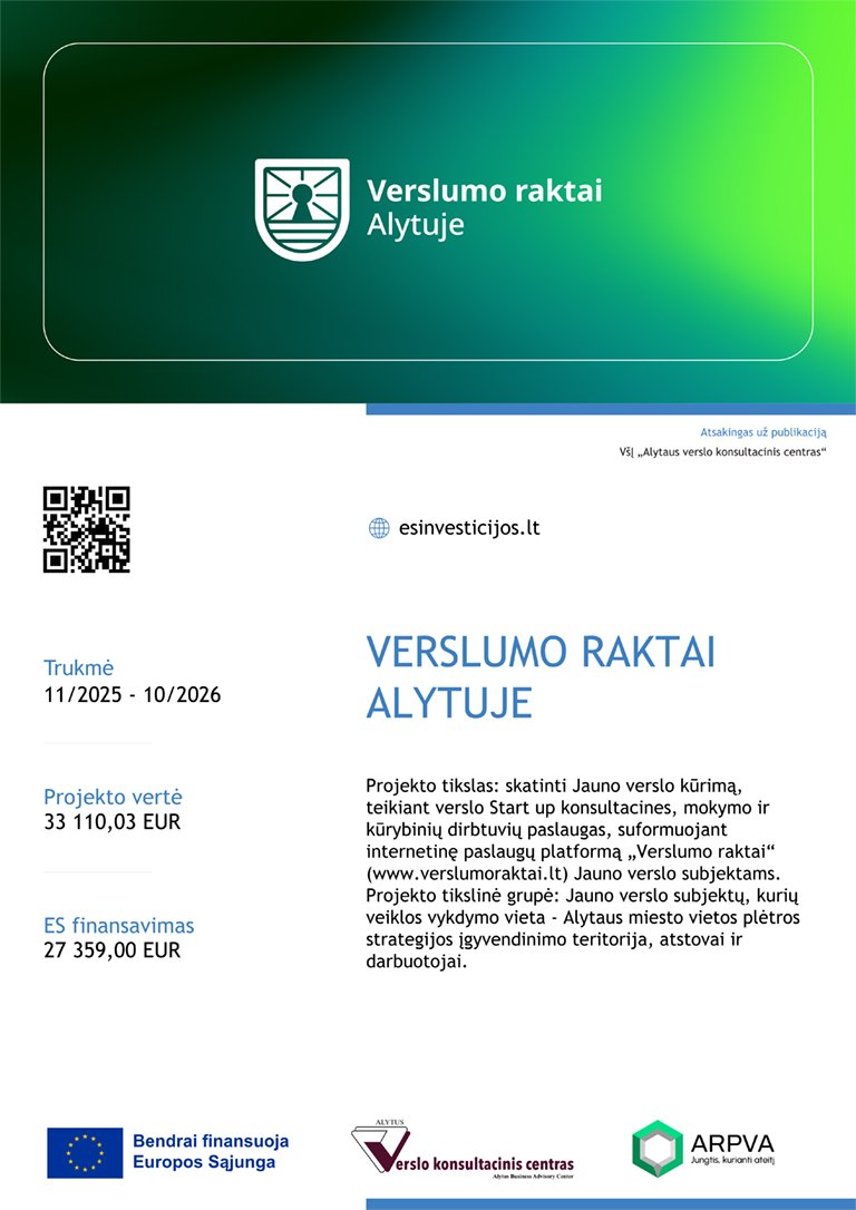 © VšĮ Alytaus verslo konsultacinis centras, įmonės kodas 149685361